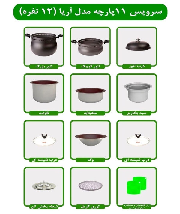 سرویس غذاپز همه کاره مدل ۱۱ پارچه ۱۲ نفره- آریا